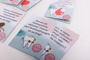Der Verein Zahnputzfuchs aus Heidelberg setzt sich mit viel Herzblut für die Mundgesundheit von Kindern im frühesten Alter ein. Insbesondere Kinder aus Kariesrisikogruppen, bedingt beispielsweise durch chronische Krankheiten oder schwierige soziale Umstände, sollen frühzeitig erreicht werden und einen niedrigschwelligen Zugang zur Zahngesundheit erhalten. So ist schon bei jungen Krebspatienten die konsequente Mundhygiene wichtig, um den Nebenwirkungen der Therapie entgegenzuwirken. Dafür besuchen ehrenamtliche Mitglieder des Vereins chronisch kranke Kinder in Kliniken, motivieren sie zum täglichen Zähneputzen und sensibilisieren gleichzeitig Eltern und Klinikpersonal. Schlüsselfigur ist dabei der Zahnputzfuchs. Die Puppe ist mit einem Gebiss ausgestattet und erlaubt einen spielerischen Zugang zum Zähneputzen. Die Kinder erfahren so auch ein Stück Freude und Normalität im oft belastenden Klinikalltag.